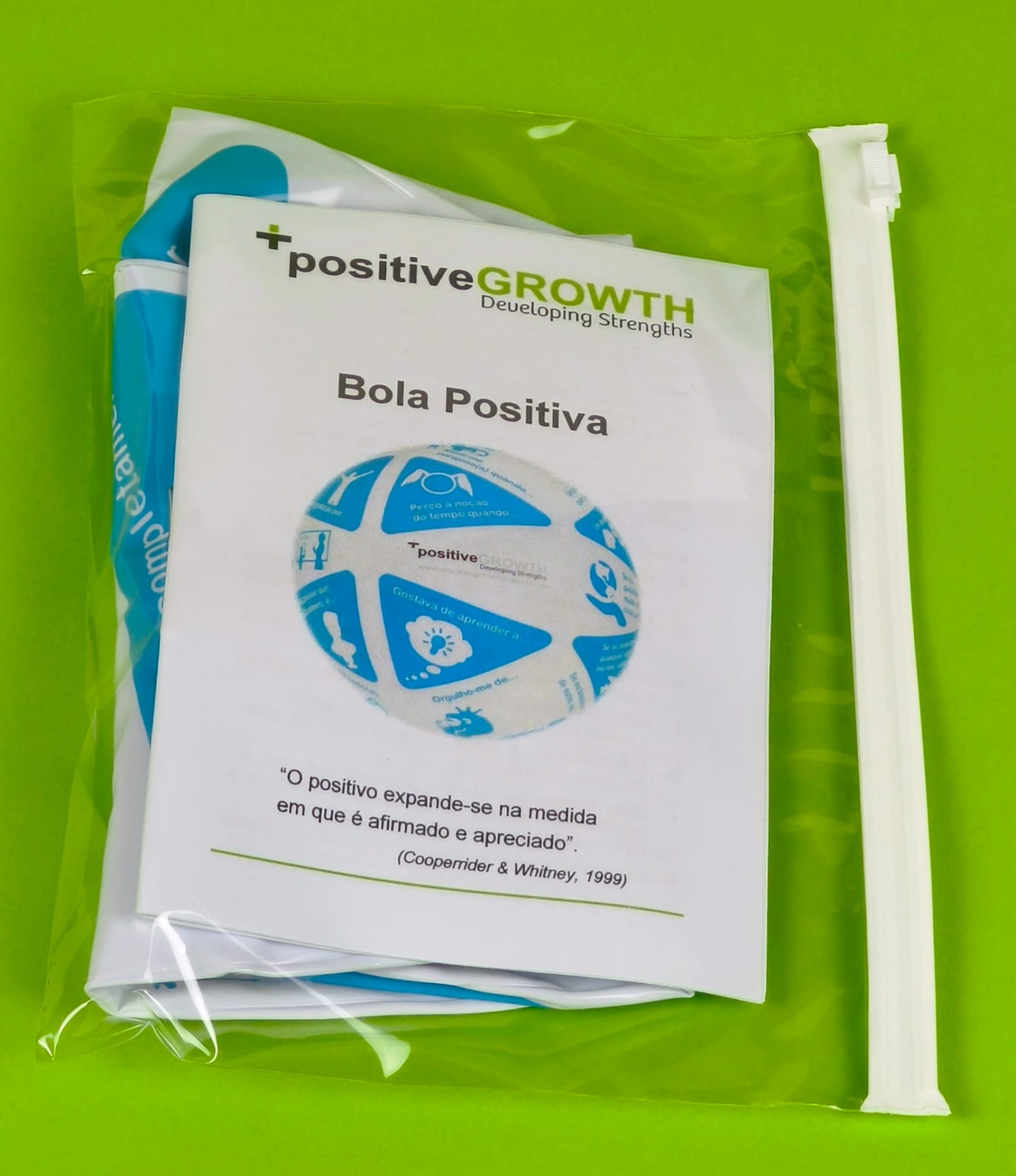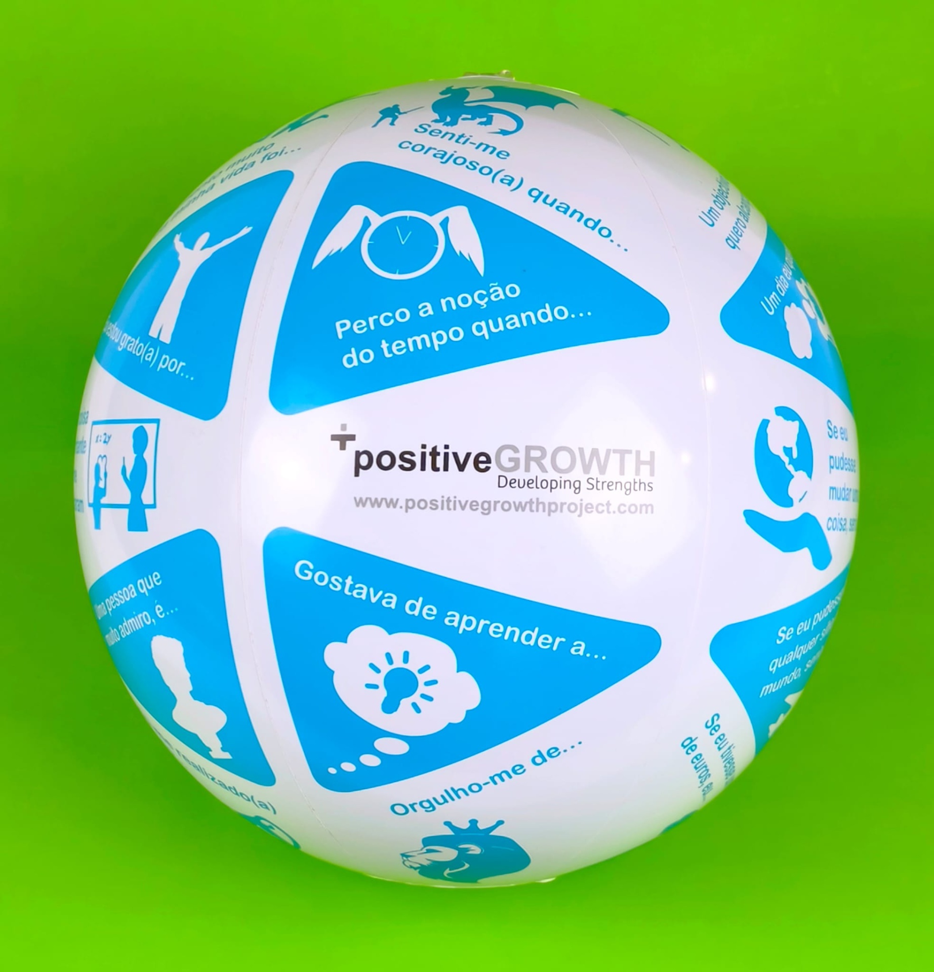 A Bola Positiva tem questões positivas impressas na sua superfície, que visam estimular o autoconhecimento, a partilha de experiências ótimas e emoções positivas, despertando o melhor existe em cada ser humano.