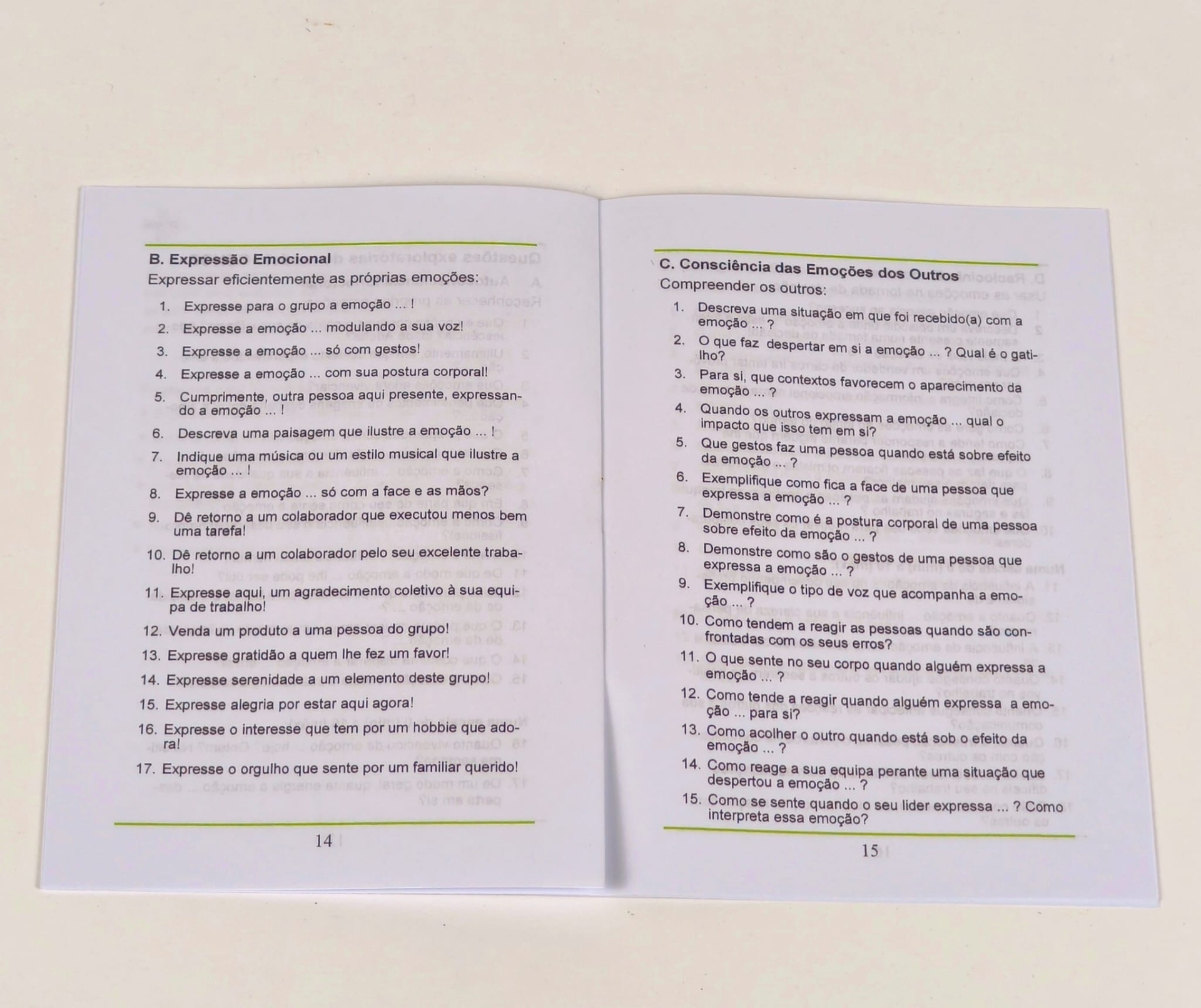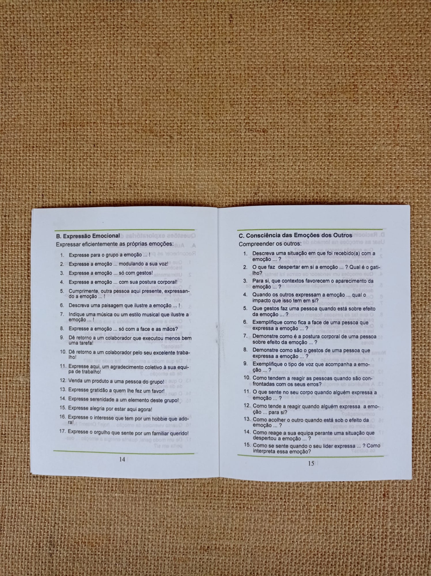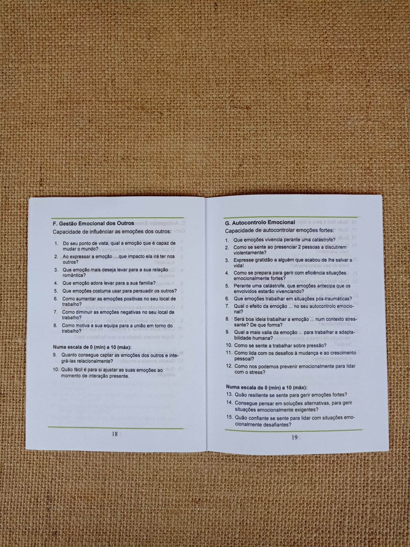 As Cartas Gerindo Emoções são acompanhadas por um manual de 16 páginas, com fundamentação teórica sobre emoções, sugestões facilitadoras do florescimento humano e questões exploratórias para dinâmizar e promover a Literacia Emocional.
