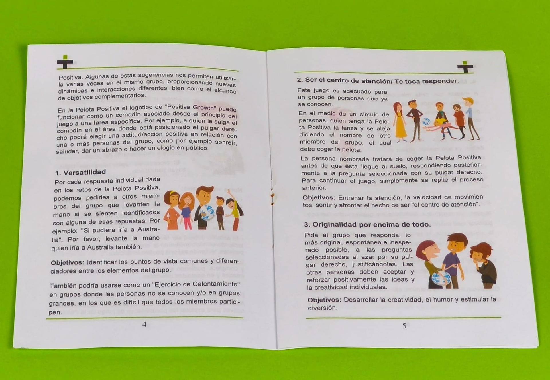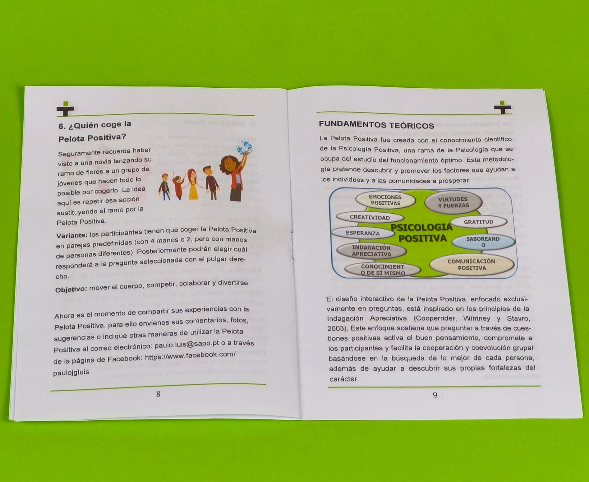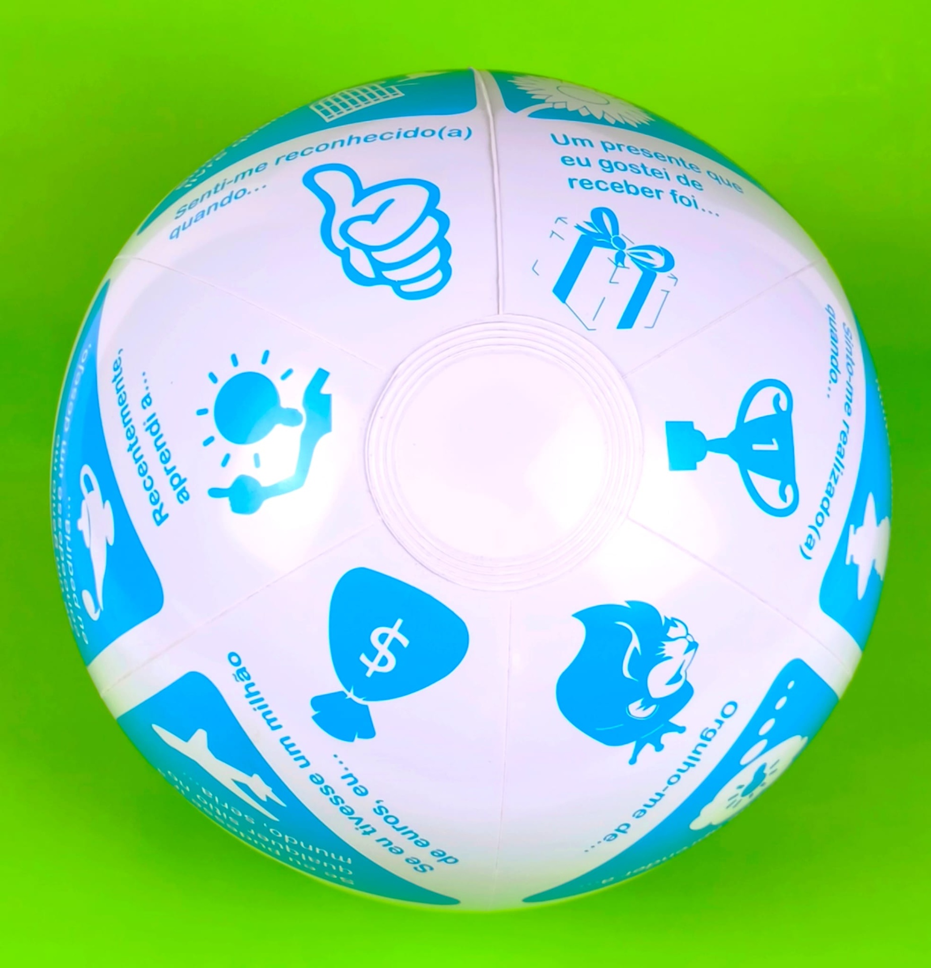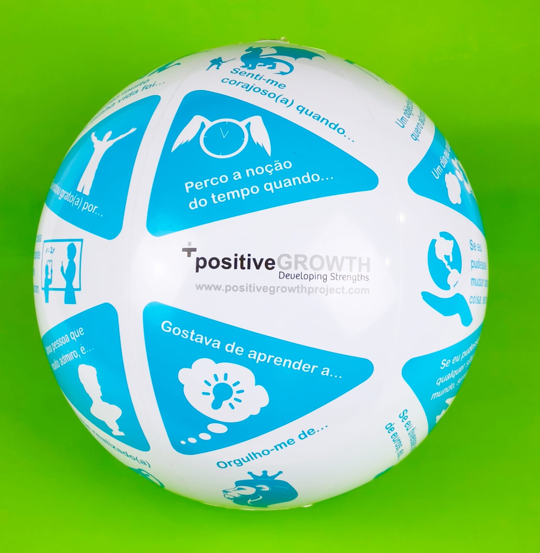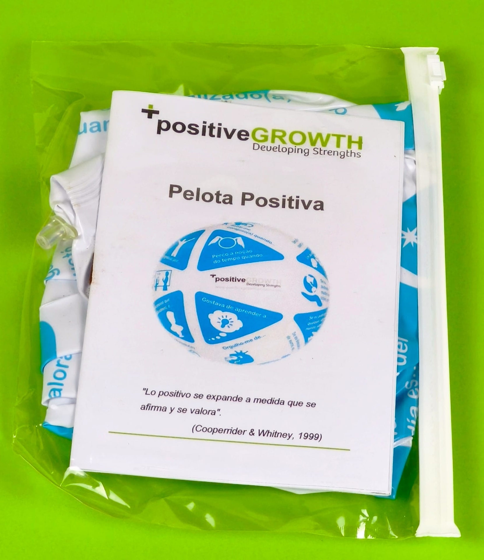 La Pelota Positiva lleva impresas en su superficie preguntas positivas que contribuyen a estimular el autoconocimiento, el intercambio de experiencias y emociones positivas, despertando lo mejor de cada ser humano.